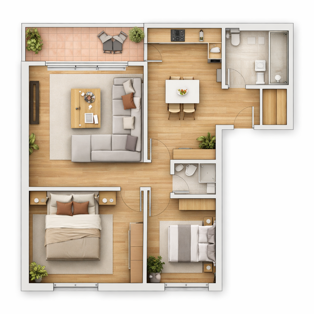 L’ingresso conduce a un’accogliente zona giorno composta da soggiorno con accesso diretto al balcone, ideale per momenti di relax all’aperto. La cucina è separata e funzionale, perfetta per chi ama avere spazi ben distinti.